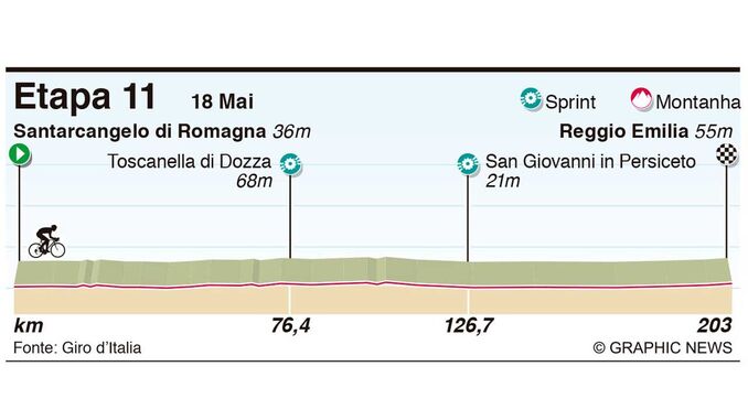 Alberto Dainese (Team DSM) alcançou a sua primeira vitória numa grande volta numa 11.ª etapa do Giro que foi discutida ao sprint no quilómetro final. O ciclista italiano levou a melhor por uma 'unha negra' sobre Gaiviri (UAE Emirates). Consonni ficou no 3.º lugar.