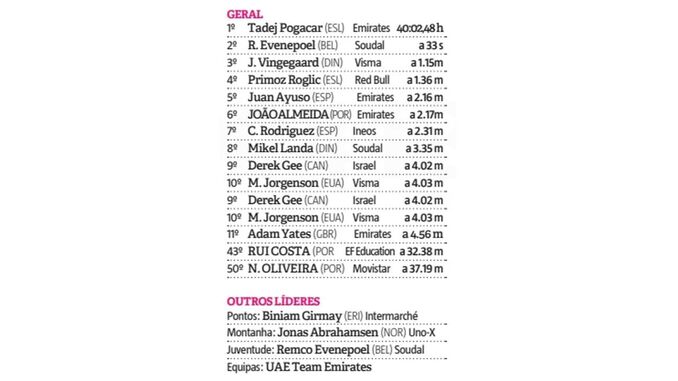 6.º - JOÃO ALMEIDA (Emirates), +1:49m