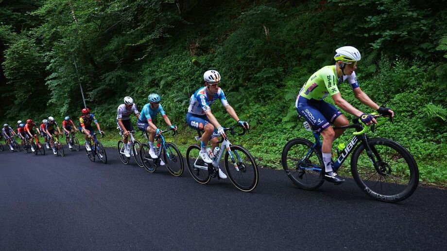 Estamos a cerca de 50 quilómetros do final da etapa e, nesta altura, são 10 os ciclistas em fuga a caminho do topo do Col de Néronne. Entre estes, estão Julien Bernard, Richard Carapaz, Ben Healy e Guillaume Martin, que levam 1:50m de vantagem para o pelotão.