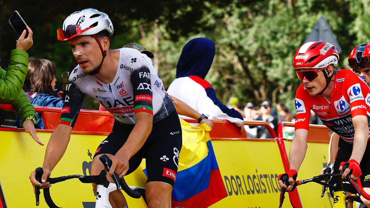 Quem deu um enorme trambolhão foi Juan Ayuso. Co-líder da equipa dos Emirados, afundou-se na subida final e chegou a mais de 12 minutos da frente. A luta pela vitória está já fora de questão para o espanhol, restando apenas saber se ficará para ajudar João Almeida como líder absoluto da UAE.