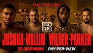 O Riyadh Season, em Riade, na Arábia Saudita, recebe este sábado um dos eventos do ano no mundo do boxe, com o chamado 'Day of Reckoning', que vai juntar no ringue grandes estrelas da modalidade e que para Portugal será transmitido em exclusividade, em regime pay-per-view (PPV), pela DAZN. Entre as principais figuras do cartaz estão Anthony Joshua (que vai lutar contra Otto Wallin) e ainda Deontay Wilder (frente a Joseph Parker), ambos em lutas de pesos pesados. Além destes dois combates cabeças de cartaz, haverá ainda mais seis lutas com promessa de emoção garantida.
