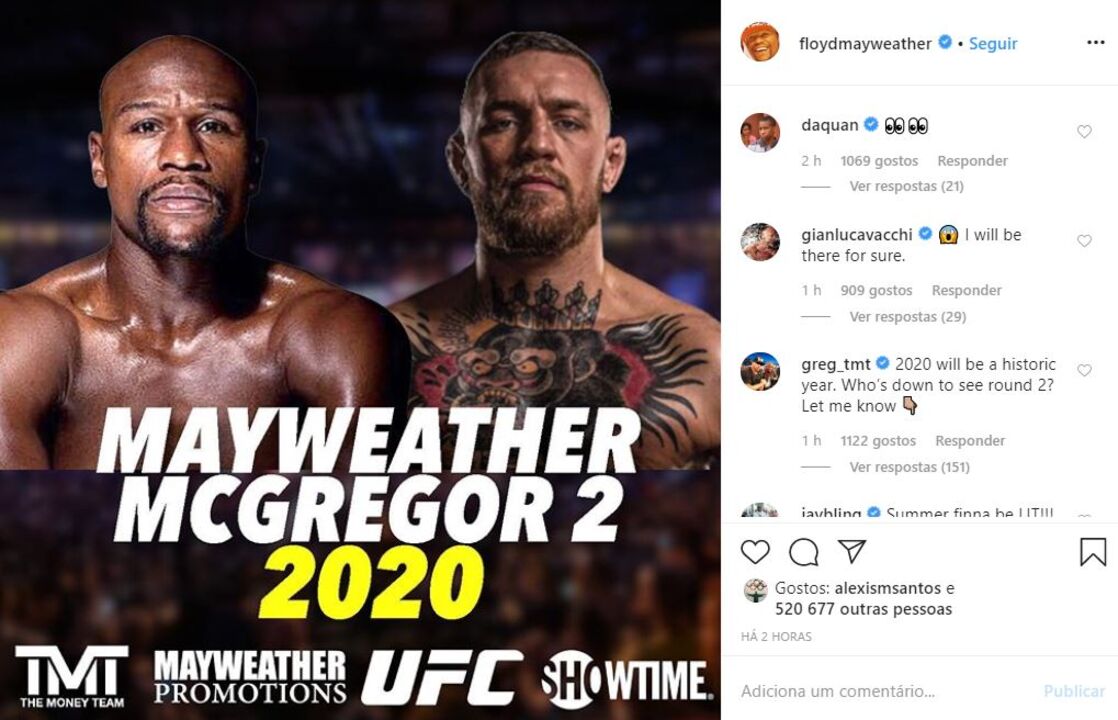 Após o combate, Floyd Mayweather publicou no Instagram uma montagem a anunciar um próximo duelo com McGregor já para este ano, como se tratasse de um desafio ao irlandês. O norte-americano 'desafiou' também o russo Nurmagomedov.