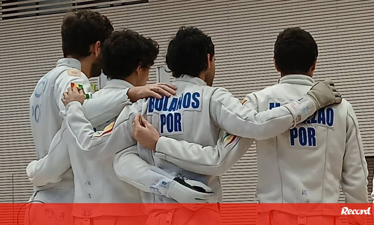 Os esgrimistas portugueses Filipe Frazão, Miguel Frazão e Max Rod foram batidos pelos cazaques Ruslan Kurbanov (vencedor da prova individual), Elmir Alimzhanov, Kirill Prokhodov e Yerlik Sertay, depois de se terem imposto aos finlandeses na ronda inaugural, por 32-31.