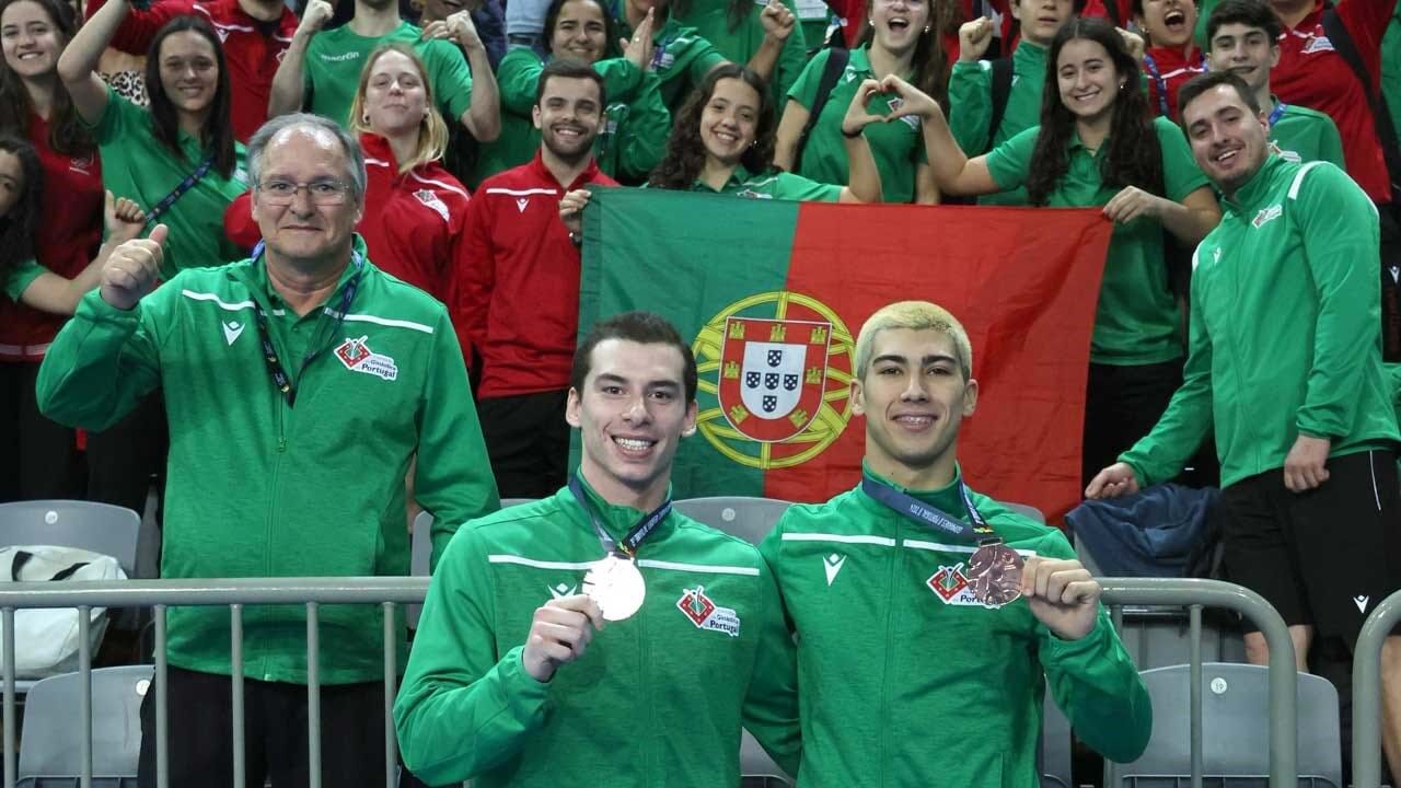 Os ginastas Gabriel Albuquerque e Lucas Santos conquistaram este sábado a medalha de bronze na final masculina de trampolim sincronizado, elevando para cinco as medalhas de Portugal na 29.ª edição dos Europeus de trampolins, que decorrem em Guimarães.