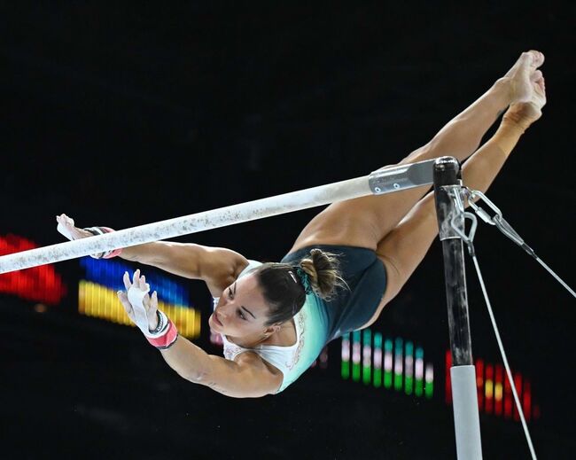 A ginasta portuguesa, que nas qualificações já tinha conseguido o apuramento olímpico para Paris'2024, somou 51.598 pontos, enquanto a norte-americana, que participou pela sexta vez em Campeonatos do Mundo, conquistou o ouro com 58.399 pontos.