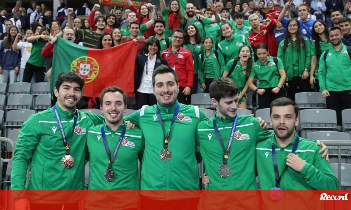 A seleção portuguesa soma agora quatro medalhas na 29.ª edição dos Europeus de trampolins, depois de ter conquistado o ouro, na final feminina de duplo minitrampolim por equipas, também realizada hoje, e a medalha de bronze nas finais masculinas por equipas de trampolim, na quarta-feira, e de tumbling, hoje.