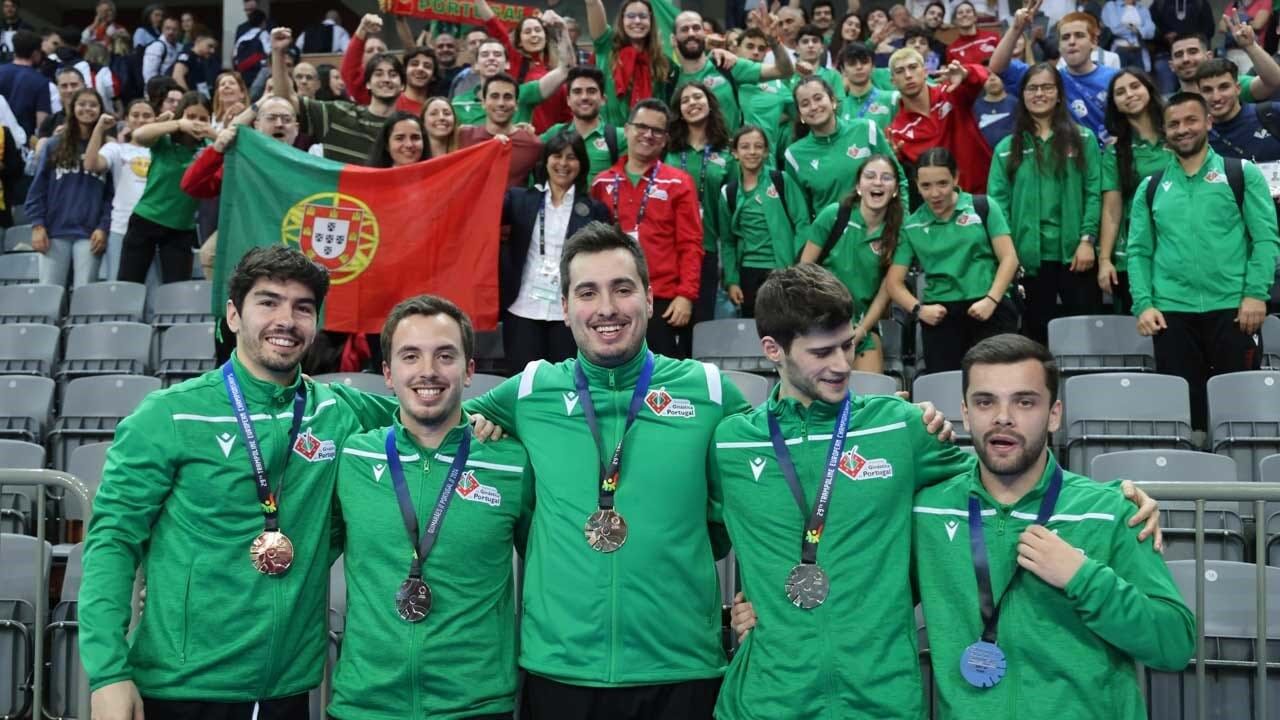 A seleção portuguesa conquistou esta sexta-feira a medalha de prata na prova masculina de duplo minitrampolim por equipas, nos Europeus de trampolins em curso até domingo, em Guimarães, enquanto a equipa feminina de tumbling foi quarta classificada.