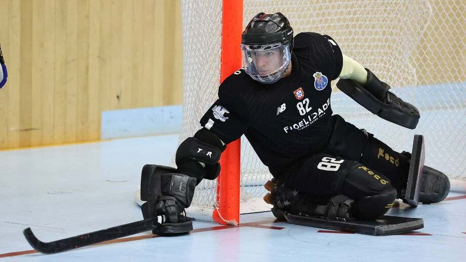 Leonardo Pais, guarda-redes do Montebello, na calha para reforçar a baliza dos dragões