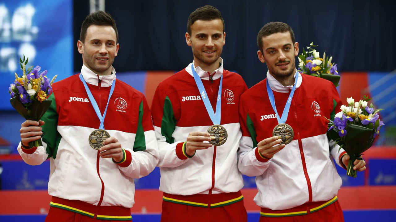 Marcos Freitas, Tiago Apolónia e João Monteiro exultaram este sábado com a medalha de bronze no ténis de mesa por equipas dos segundos Jogos Europeus, assumindo o objetivo de chegar ao pódio depois da vitória em Baku 2015.