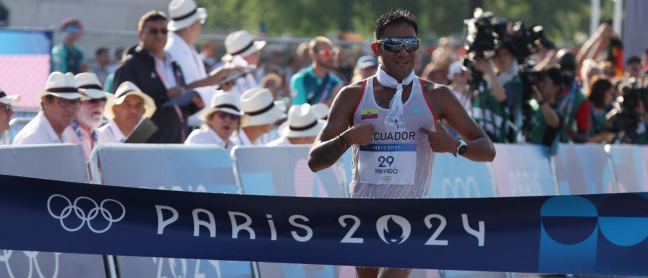 Brian Daniel Pintado fez 29 anos na passada segunda-feira e a maior prenda de aniversário surgiu alguns dias depois. Esta quinta-feira, o atleta do Equador subiu ao mais alto degrau do pódio, ao ter arrecadado o ouro na prova de 20 km marcha, que inaugurou o atletismo nos Jogos de Paris'2024. Cortou a meta e festejou à Cristiano Ronaldo, com um salto e um 'siii' já pouco efusivo face ao grande desgaste da prova.