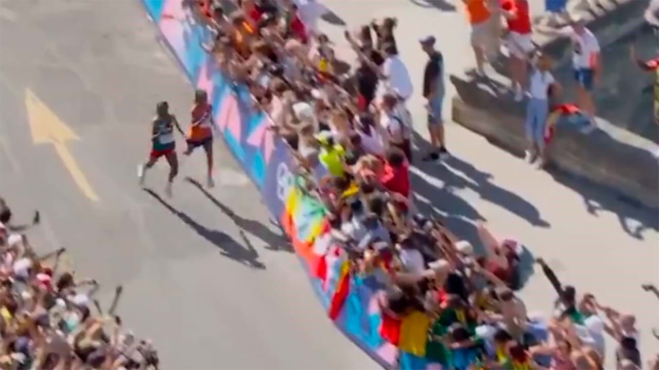 Pushing and shoving on the final corner and a sprint to the line capped off another Olympic Record marathon and a win for Sifan Hassan #Paris2024 #Olympics pic.twitter.com/yPRjEQrK83
