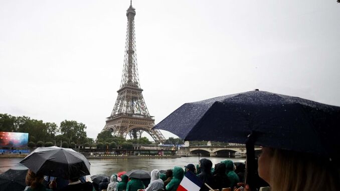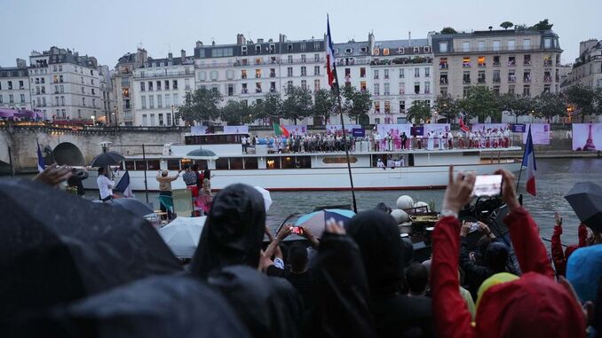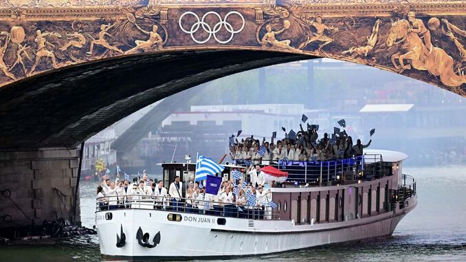 Passavam poucos minutos das 18h30 quando as primeiras embarcações com as respetivas delegações começaram a desfilar em pleno Rio Sena, que juntou quase 300 mil pessoas nas suas imediações. As comitivas de todos os países presentes nos Jogos saíram por ordem alfabética e tiveram que percorrer 6 quilómetros até ao grande palco, que tinha a Torre Eiffel como pano de fundo. A comitiva portuguesa, que teve Fernando Pimenta e Ana Cabecinha como porta-estandartes, desfilou juntamente com Qatar e Coreia do Norte e contou com 22 dos 73 atletas lusos que estarão em competição. Foi um longo e incomum desfile, sempre acompanhado com diversos espetáculos pirotecnicos e musicais - Lady Gaga abriu as hostilidades neste capítulo. Destaque também para as embarcações da Palestina e Ucrânia, que acabaram por ser merecedoras de um forte aplauso devido aos tensos conflitos que se vivem nos dois países.