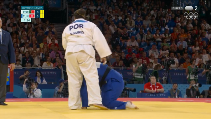 Rochele Nunes fecha a participação portuguesa no judo em Paris'2024, defrontando no segundo combate do dia a tunisina Sarra Mzougui. Esperemos que seja o primeiro de cinco combates rumo... às medalhas!