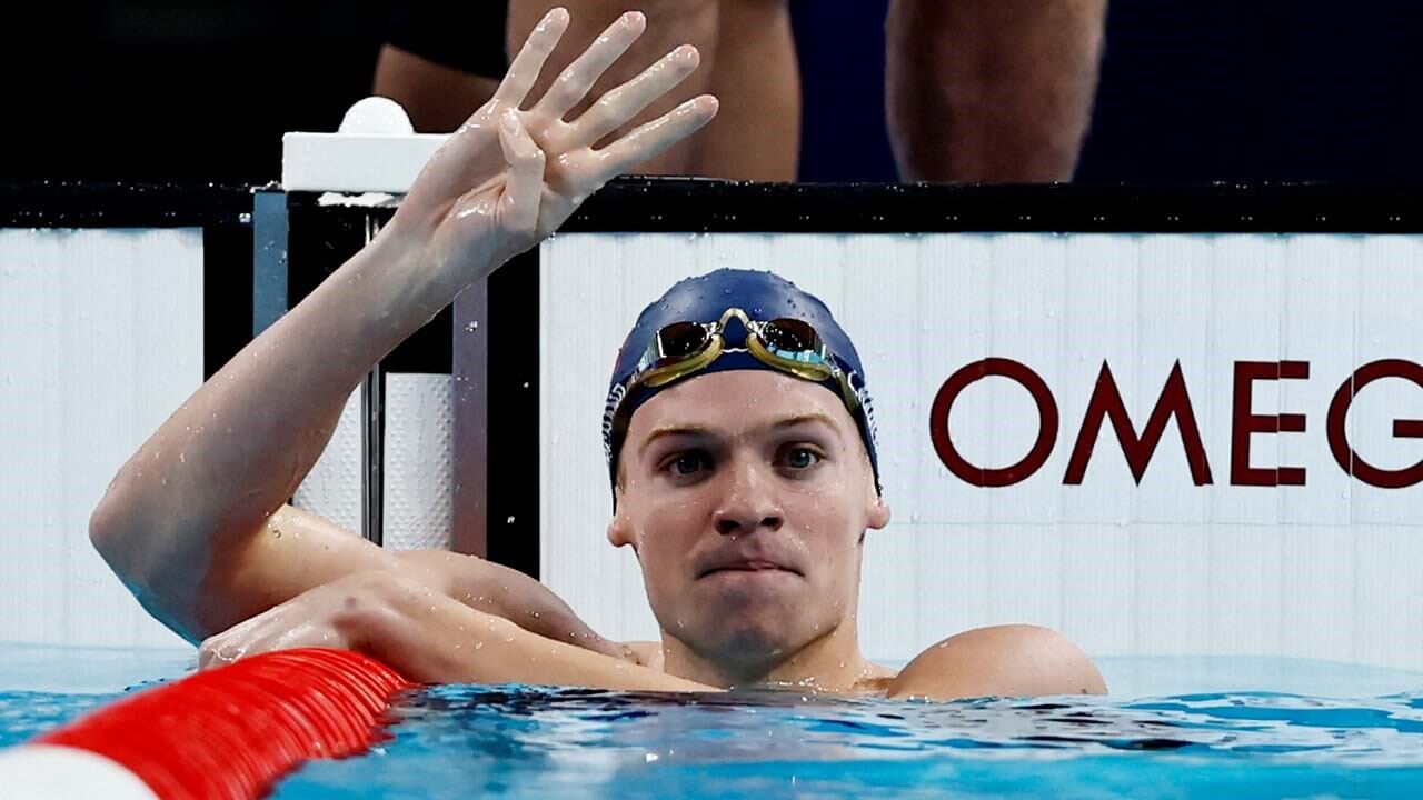 Em Paris'2024, Marchand subiu ao lugar mais alto do pódio nos 400 e 200 estilos, 200 costas e 200 bruços.