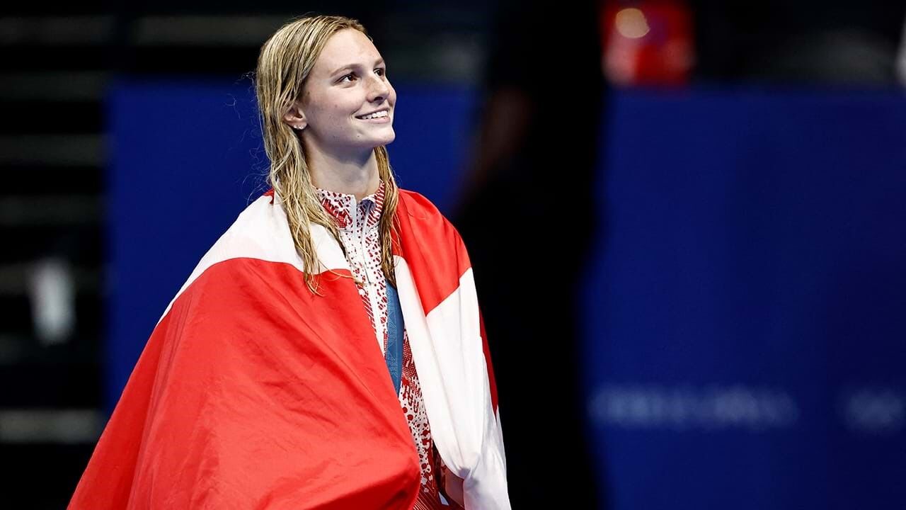 A canadiana conseguiu a sua terceira medalha de ouro em Paris'2024, depois de já ter vencido os 400 metros estilos e os 200 mariposa, além de ter uma medalha de prata nos 400 metros livres.