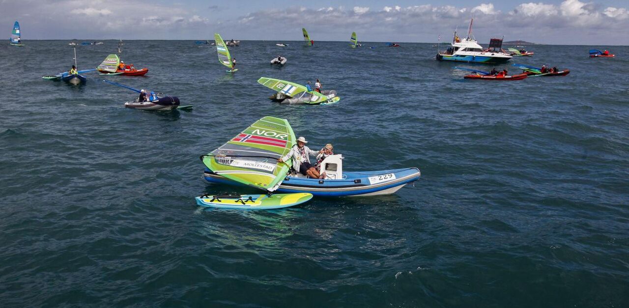 As regatas de 49er, masculinos, classe na qual competem os portugueses Jorge Lima e José Costa, e femininos disputaram-se normalmente, enquanto as de 470, masculinos e femiminos, foram igualmente adidas para terça-feira.