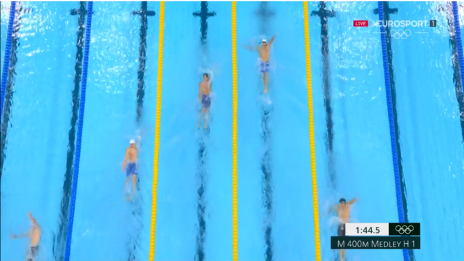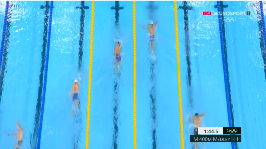 É o primeiro representante português na natação, a disputar a primeira eliminatória dos 400 metros estilos.