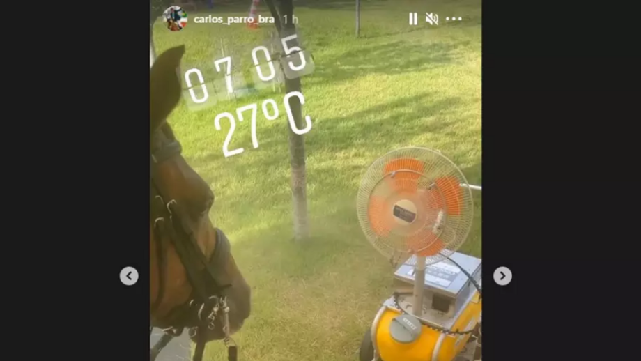 O brasileiro Carlos Parro partilhou há pouco uma imagem que diz bem das condições climáticas que se vivem em Tóquio. Eram sete da manhã e já estavam 27 graus. A solução? A que está na imagem...