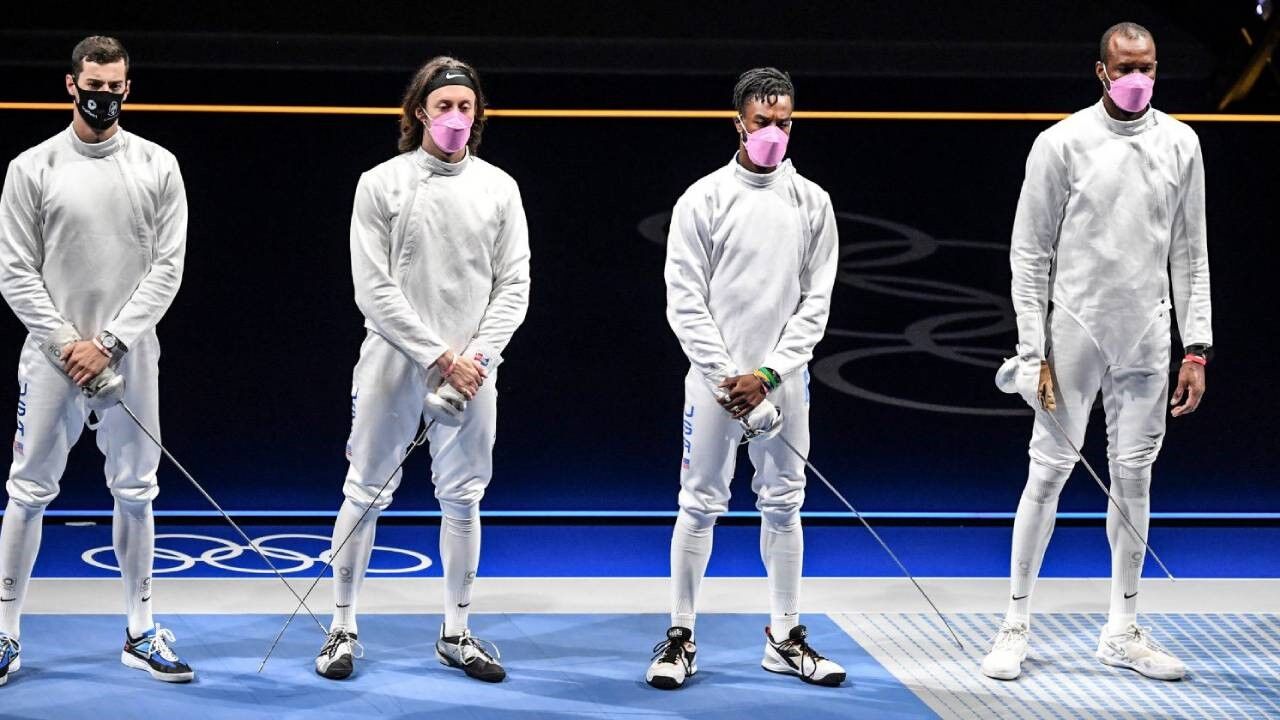 Três dos elementos da equipa norte-americana de esgrima apareceram em Tóquio com máscaras cor de rosa, em protesto contra o quarto atirador da sua seleção, Alen Hadzic, acusado de assédio sexual.