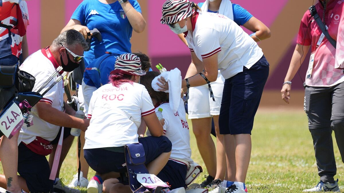 A russa Svetlana Gomboeva desmaiou esta madrugada em plena competição na qualificação para o torneio de tiro com arco, não resistindo às elevadas temperaturas que se têm feito sentir em Tóquio. Gomboeva rapidamente recuperou os sentidos, mas acabou por ser transportada para fora da arena de competição de maca, isto depois de ter sido prontamente auxiliada por elementos do staff e da sua equipa, que lhe colocaram sacos de gelo na cabeça de forma a baixar a sua temperatura corporal.