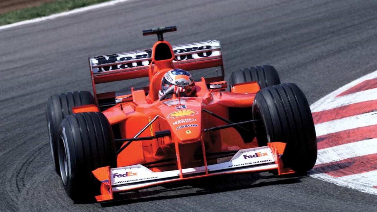 O monolugar, um exemplar da época dourada da Ferrari, começou por ser o carro suplente de Schumacher em 2000, mas foi com esse que conquistou a vitória no Grande Prémio de Brasil e alcançou a 'pole position' nos Grande Prémios de Espanha e Mónaco.