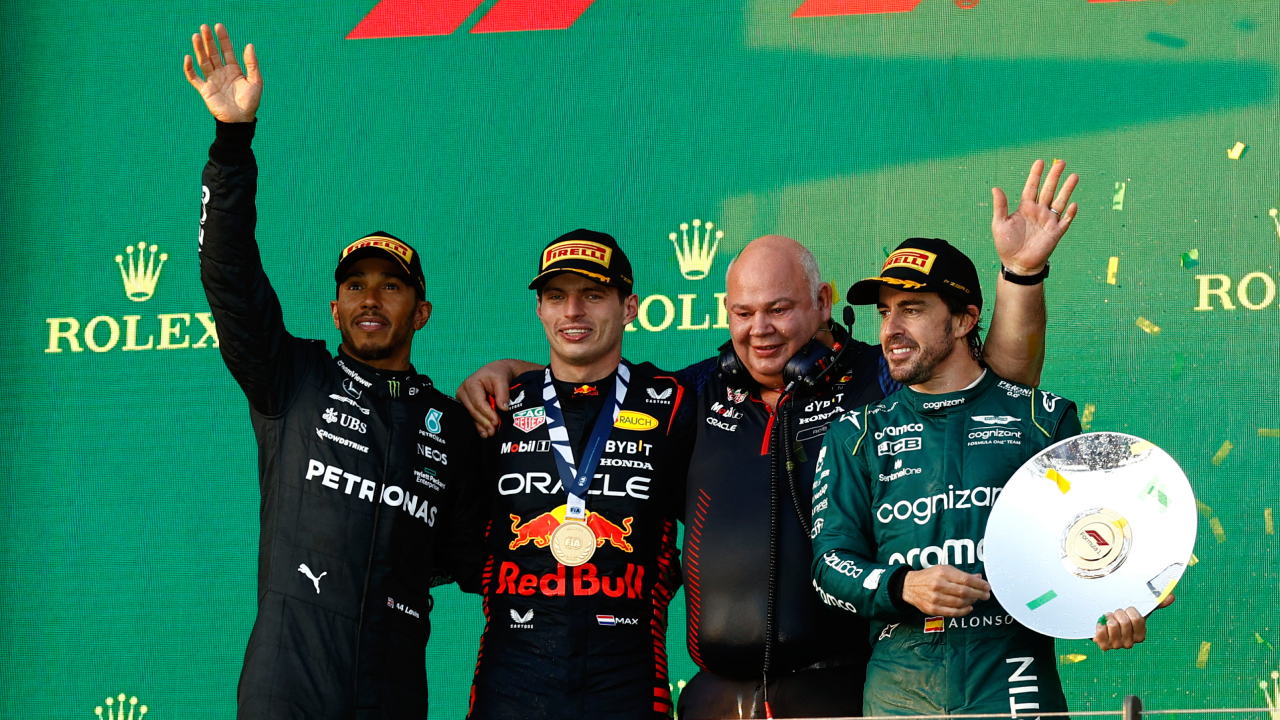 Degradação dos pneus e a presença de três campeões mundiais no pódio"Não estava a fazer 'bluff'. Penso que estava a puxar demasiado para poder continuar [na frente de Fernando Alonso]. No início também, mas para tentar manter o Max atrás de mim. Depois, o Alonso estava a acelerar e, como sabem, eles são muito, muito rápidos. Creio que ele foi um pouco mais rápido do que eu atrás de mim, mas conseguiu mantê-lo distante o suficiente. Que lenda. Temos um campeão mundial pela frente. Tivemos dois campeões mundiais nos três primeiros lugares, ou três campeões mundiais nos três primeiros lugares. É extraordinário", concluiu.