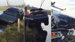 Um Audi RS Q8 comprado há apenas 20 dias caiu à água num canal da cidade de Reeuwijk-Dorp, na Holanda, depois do condutor ter alegadamente perdido o controlo do automóvel.