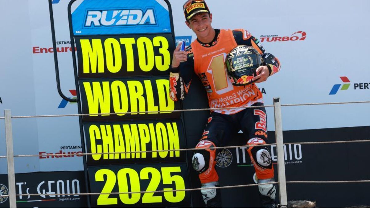 O piloto espanhol José Antonio Rueda (Red Bull KTM Ajo) sagrou-se este domingo campeão do mundo de Moto3 ao vencer o Grande Prémio da Indonésia, em Mandalika, numa corrida interrompida por bandeira vermelha.