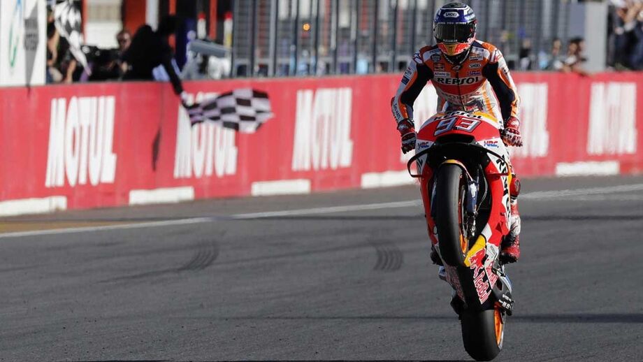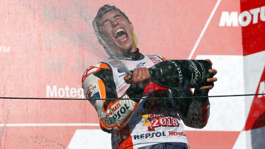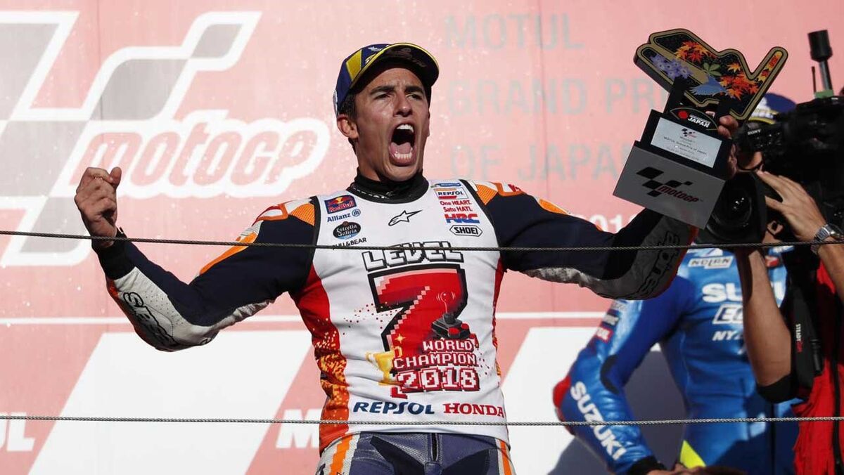 Márquez está agora apenas atrás de Giácomo Agostini (15) e Valentino Rossi (9) na lista dos pilotos mais vezes campeões mundiais.