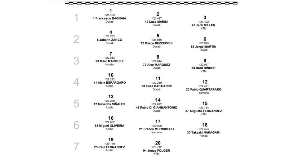 2 voltas para o fim - Brad Binder passa Luca Marini, mas o sul-africano não consegue manter a quarta posição. Atenção que Zarco está a tentar meter-se nesta luta pelo quarto lugar...
