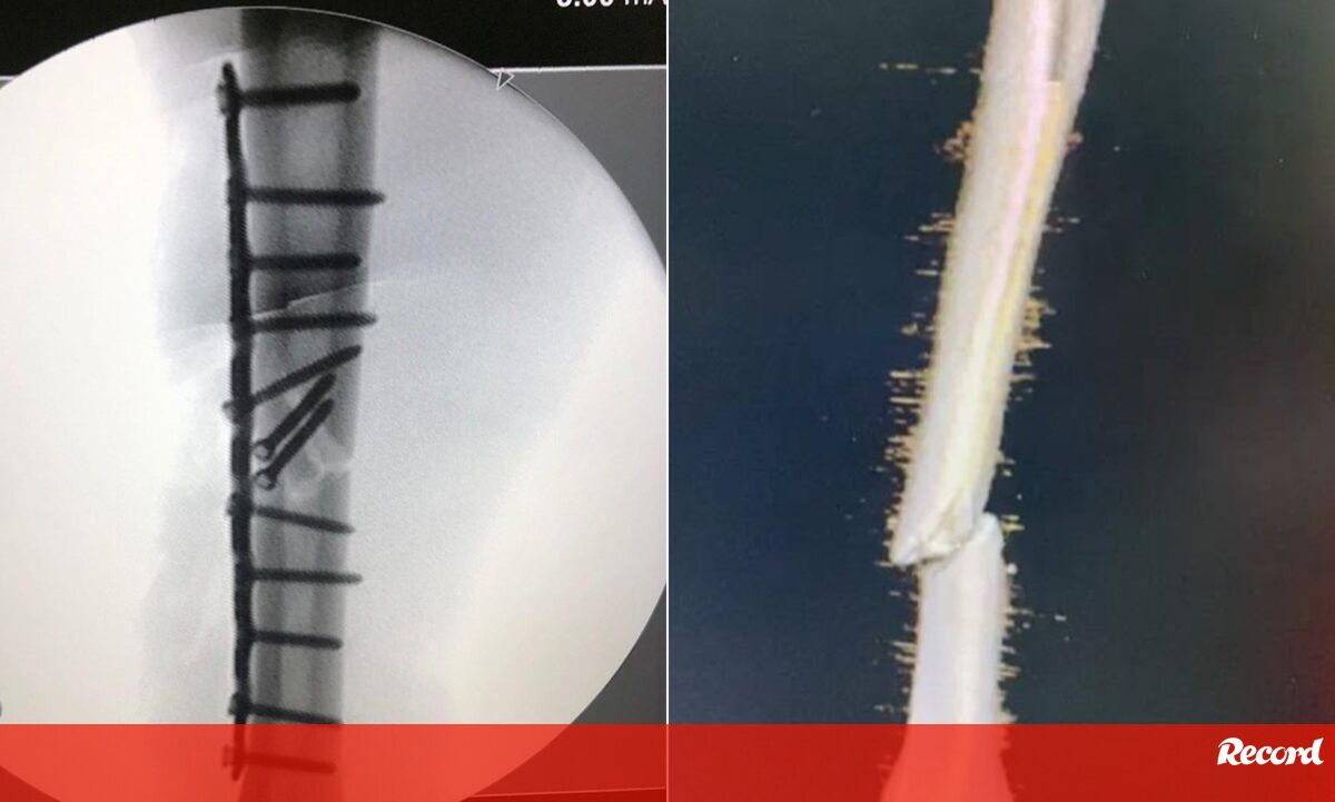 Na (arrepiante) imagem pós-operatória podem ver-se 13 parafusos que foram utilizados para unir a fratura.