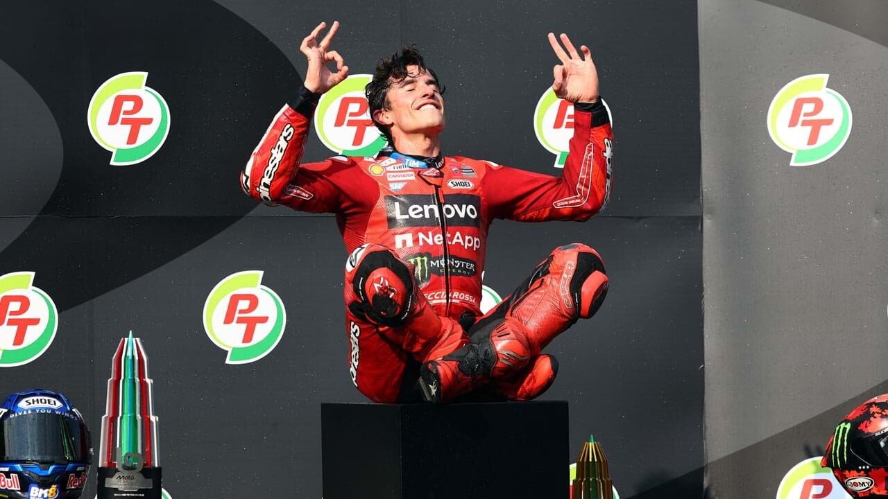 Sem o campeão Jorge Martín (Aprilia) em pista devido a lesão, Marc Márquez largou da 'pole position', já depois de ter vencido a corrida sprint, no sábado, colocando-se de imediato na frente do pelotão, com o seu irmão Alex no encalço e o companheiro de equipa, o antigo campeão 'Pecco' Bagnaia, em terceiro.