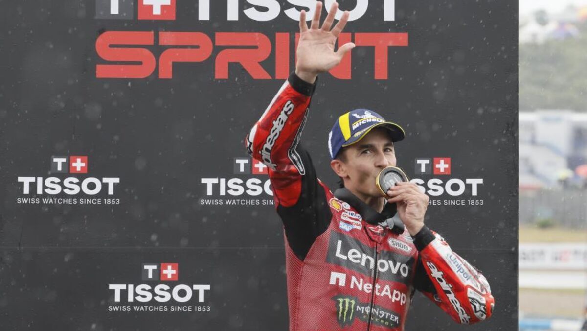 O espanhol Marc Márquez (Ducati) venceu a corrida sprint do Grande Prémio de Espanha, quarta ronda do Mundial de MotoGP, a primeira da história em que os pilotos tiveram de trocar de mota devido à chuva.