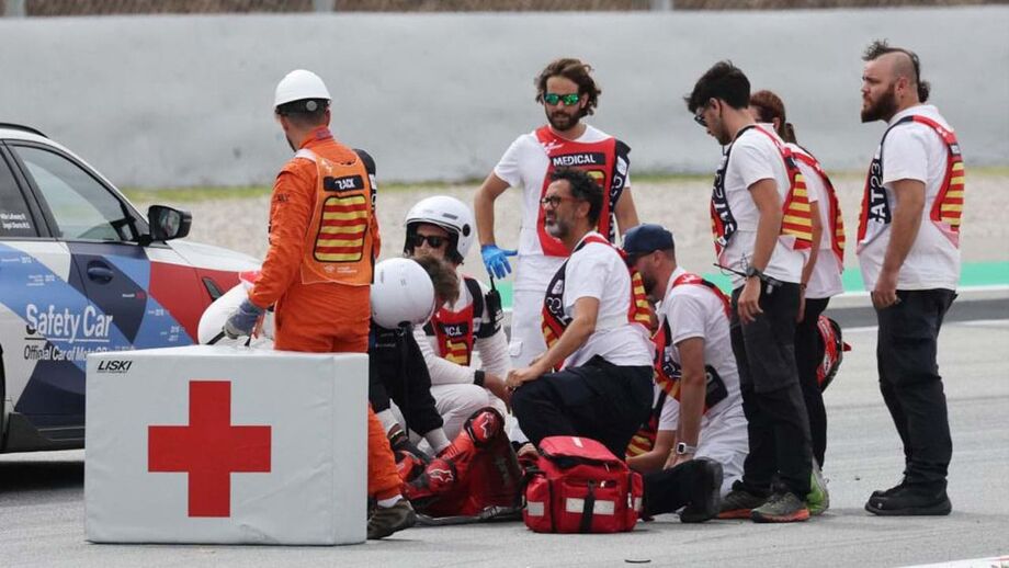 Partida muito atribulada no GP da Catalunha com Zarco, Bezzecchi, Alex Márquez, Bastianini, Di Giannantonio e Bagnaia a irem ao chão logo na primeira volta. Este último ficou mal-tratado, depois de uma moto lhe passar por cima da perna, tendo sido transportado para o centro médico.