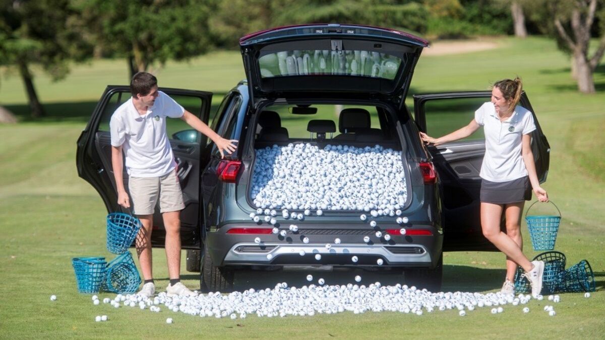Mas quase tão importante quanto a quantidade de bolas é a forma como a SEAT as colocou na bagageira do seu SUV, recorrendo a dois golfistas equipados com um taco Sand Wedge de 56º. Tacada após tacada, a mala do Tarraco foi começando a encher. Mas após a barreira das 3.300 bolas, a gravidade entrou em jogo e algumas começaram a cair. Foi então que Marina Martinez e Oriol Martinez recorreram a uma solução bem mais rápida: cestos cheios de bolas!