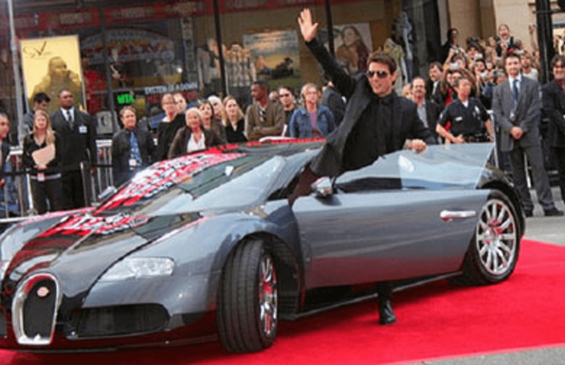 Em 2006, na premiére do terceiro capítulo da saga "Missão Impossível", realizado por J.J. Abrams, Tom Cruise chegou aos evento no seu Bugatti Veyron. O actor norte-americano, que até já se aventurou ao volante de um Fórmula 1 da Red Bull Racing, foi um dos primeiros clientes no mundo a ter um Veyron, mas a história não acabou bem.