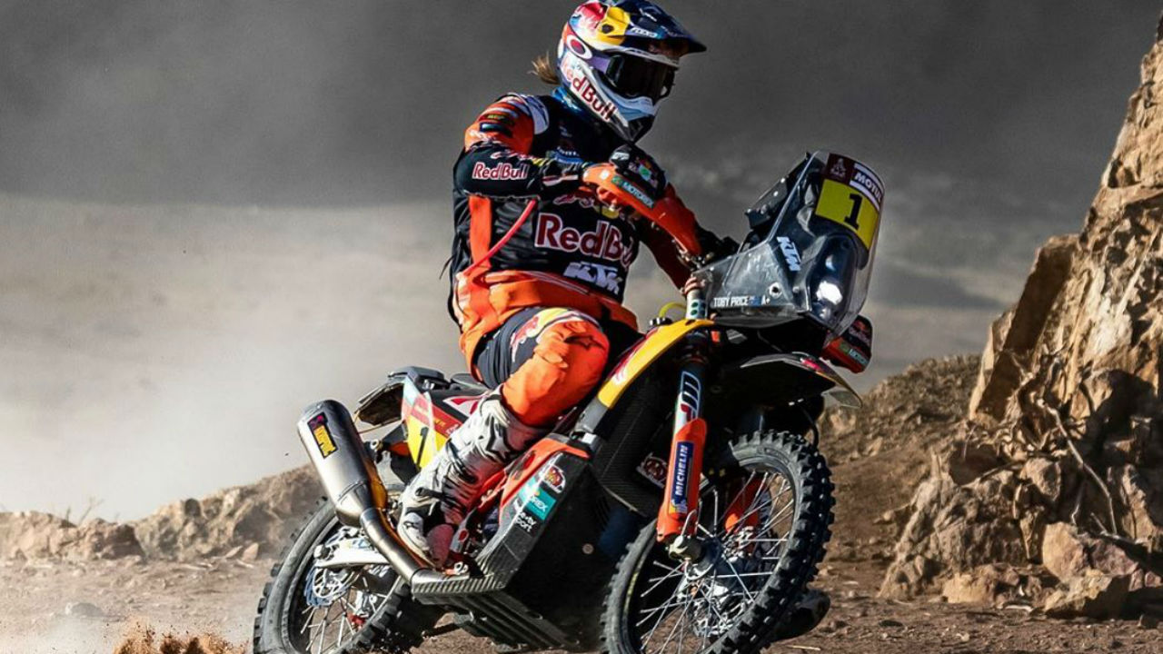 O australiano Toby Price (KTM) tornou-se esta quinta-feira o primeiro piloto a repetir uma vitória nas motas na 42.ª edição do Rali Dakar de todo-o-terreno, ao vencer a quinta das 12 etapas da prova, na Arábia Saudita.
