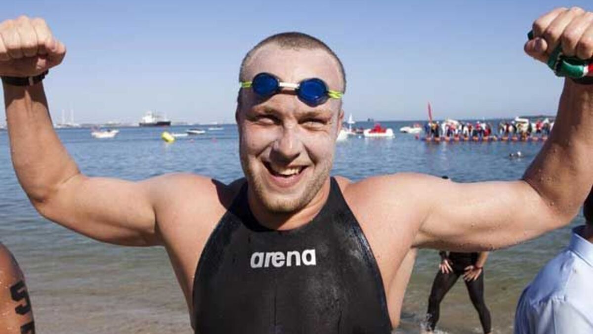 Em extra competição, o nadador irlandês Christopher Bryan foi o nadador mais rápido ao terminar os 10km em 2:02.15,2...