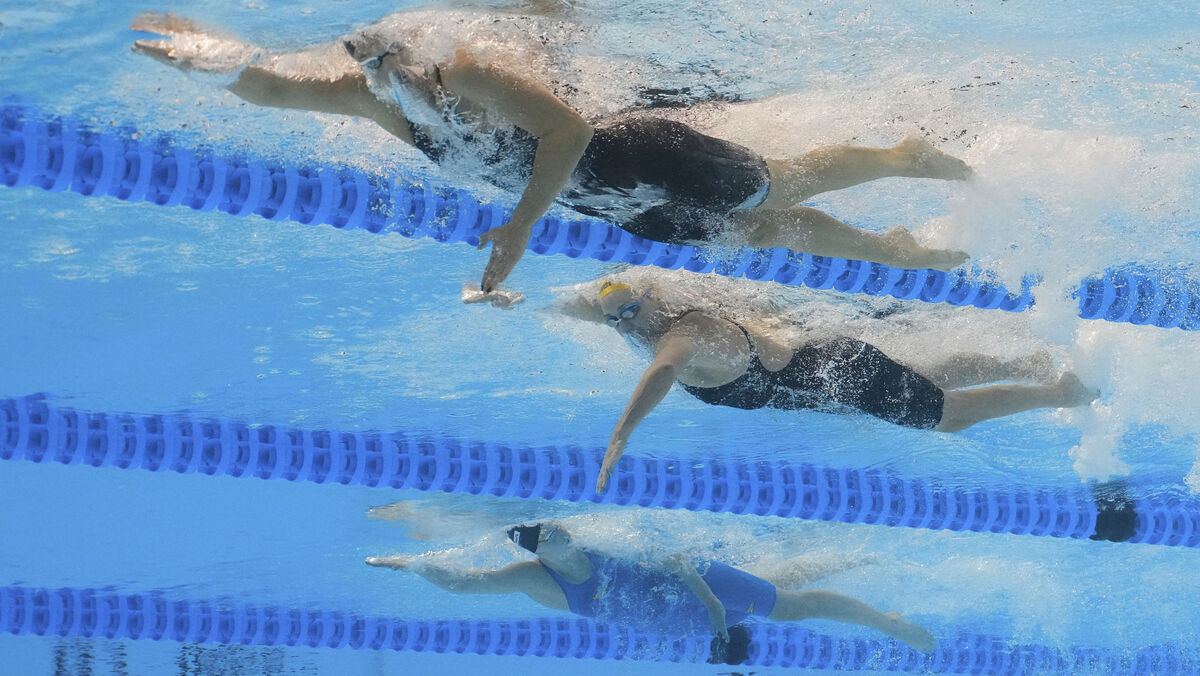 Katie Ledecky, a nadadora mais famosa da equipa americana, teve um desempenho normal na sua sessão preliminar de domingo e não pareceu ser afetada.