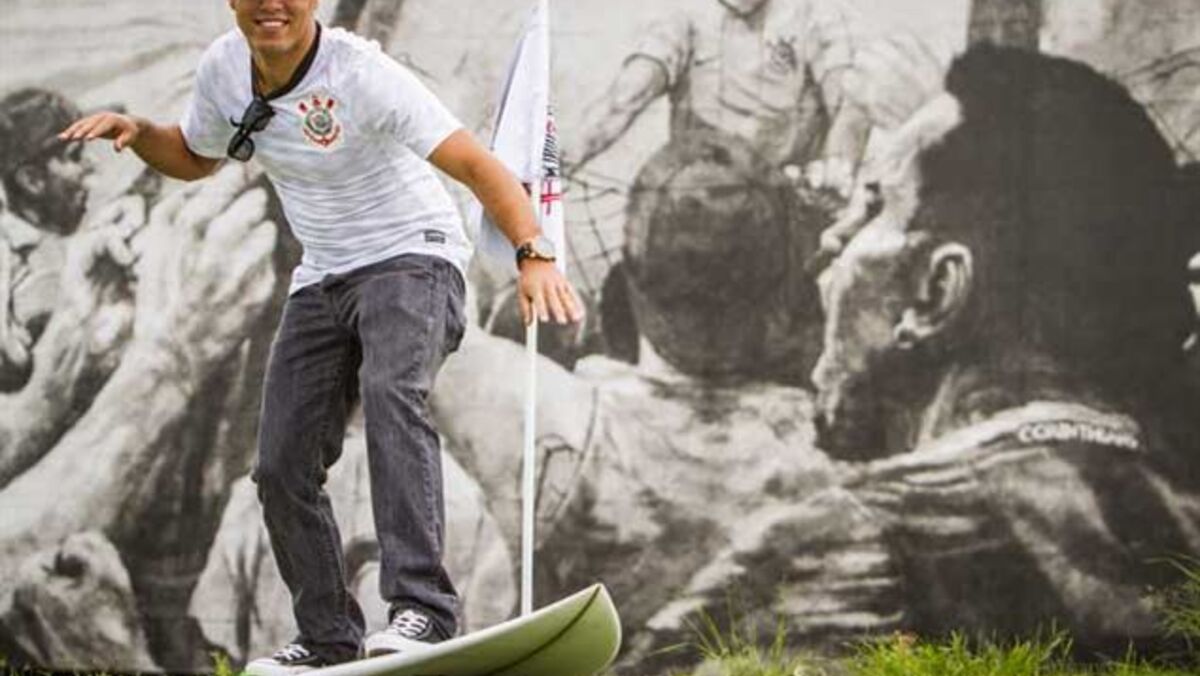 Quem também partilha esta paixão pelo clube brasileiro que veste de preto e branco é o surfista Miguel Pupo. Assim que se aproxima e percebe que o tema é futebol pergunta: "E aí, Patrícia, você é Benfica ou Porto?" Uma rápida explicação de que há outros clubes no país fá-lo voltar à timidez a que já nos acostumou. "Quando eu era pequeno jogava à bola todos os dias. Organizavam gincanas [torneios] na escola e eu participava sempre. Não era dos melhores mas era um zagueiro [defesa central] bom [risos]", conta. "Agora, o surf levo muito a sério. Não há mais tempo para brincadeira", justifica. E como adepto ferrenho do Corinthians acrescenta, sorridente: "É o líder do Brasileirão. Só faltam umas rodadas para ser campeão e vamos comemorar bastante."
