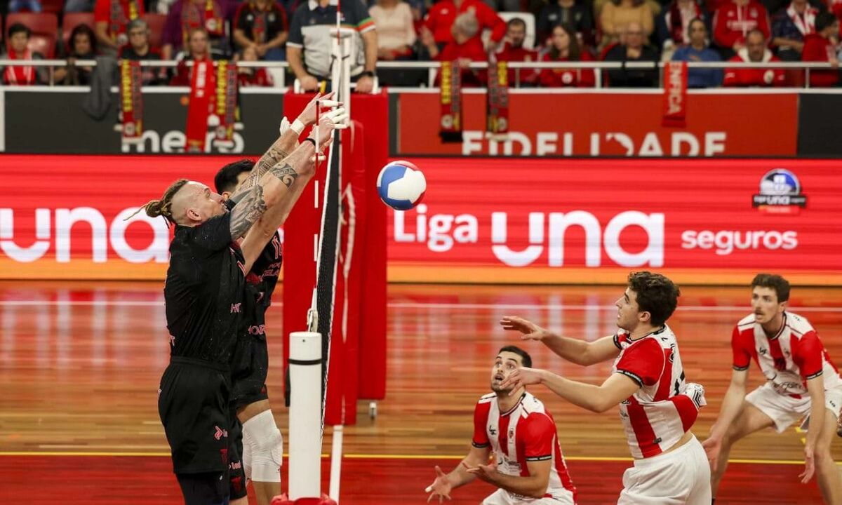 Na Luz, os campeões nacionais não deram hipóteses e triunfaram por 25-19, 25-17 e 27-25.
