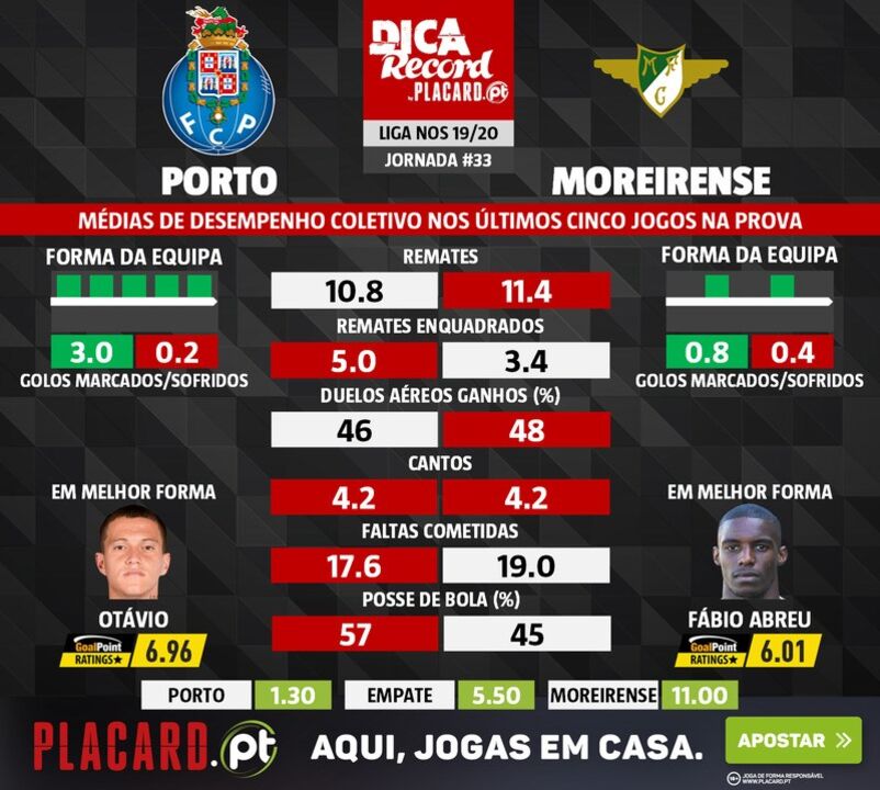 20 julho 2020 - 10:50 As melhores previsões para o FC Porto-Moreirense: o que dizem as médias de desempenho coletivo ... × Funcionalidade exclusiva para assinantes Record Premium Assine para partilhar E usufrua de todas as vantagens de ser assinante Deixe o seu comentário Para poder guardar esta notícia deverá efectuar login. Caso não esteja registado no site do Record, efectue o seu registo gratuito. 20.07.2020 As melhores previsões para o FC Porto-Moreirense: o que dizem as médias de desempenho coletivo Pub Deixe o seu comentário