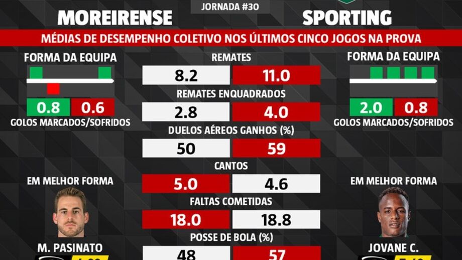 As melhores previsões para o Moreirense-Sporting: o que dizem as médias de desempenho coletivo