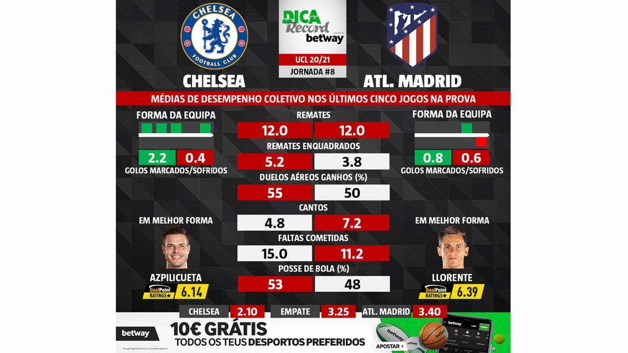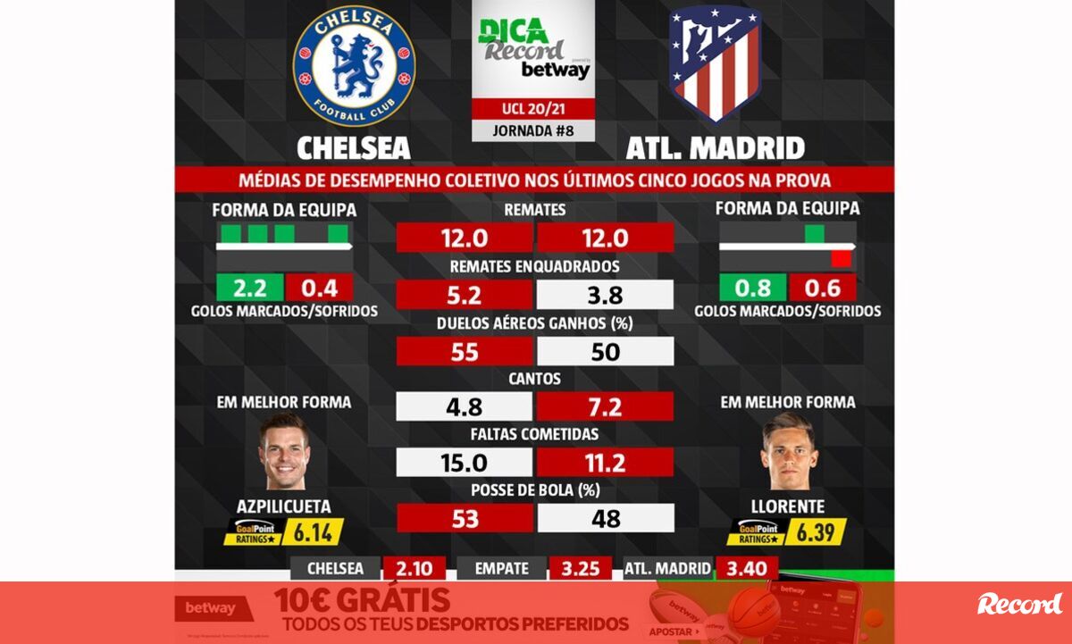 10 março 2021 - 12:02 As melhores previsões para o Chelsea-Atlético Madrid: médias de desempenho coletivo das duas equipas ... × Funcionalidade exclusiva para assinantes Record Premium Assine para partilhar E usufrua de todas as vantagens de ser assinante Deixe o seu comentário Para poder guardar esta notícia deverá efectuar login. Caso não esteja registado no site do Record, efectue o seu registo gratuito. 10.03.2021 As melhores previsões para o Chelsea-Atlético Madrid: médias de desempenho coletivo das duas equipas Deixe o seu comentário