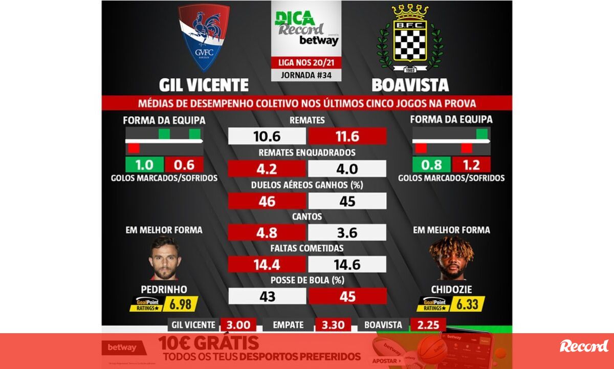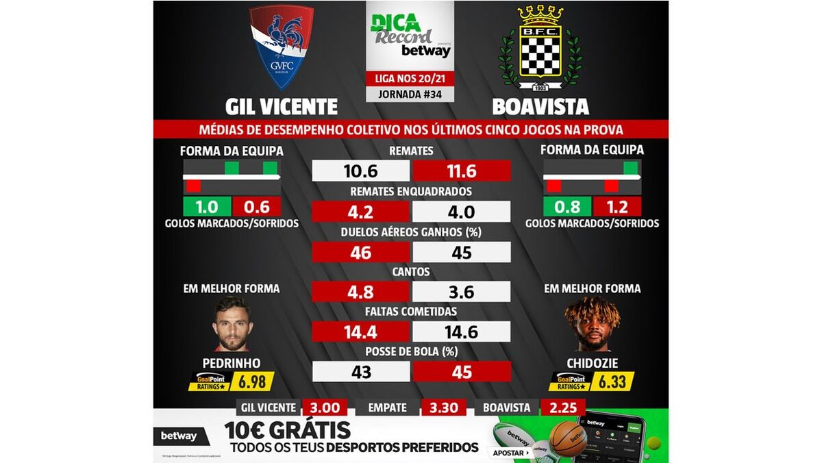 O Gil Vicente recebe o Boavista amanhã, às 20h00, num encontro da 34.ª e última jornada da Liga NOS. Se vai apostar neste jogo, tenha em atenção estes detalhes.