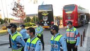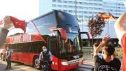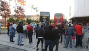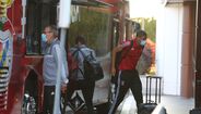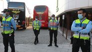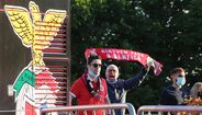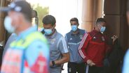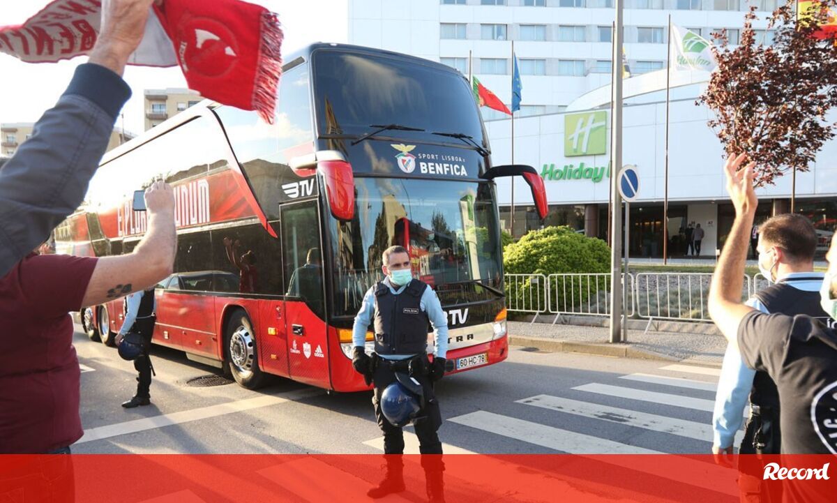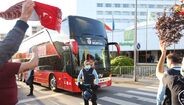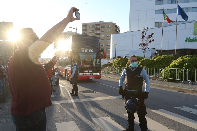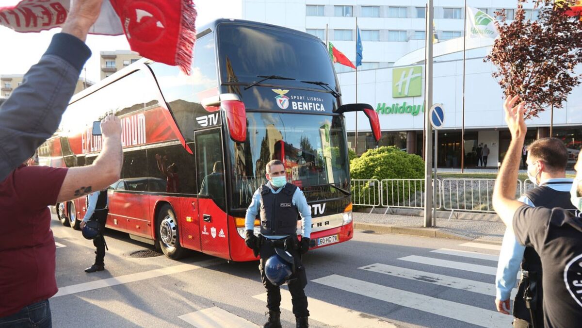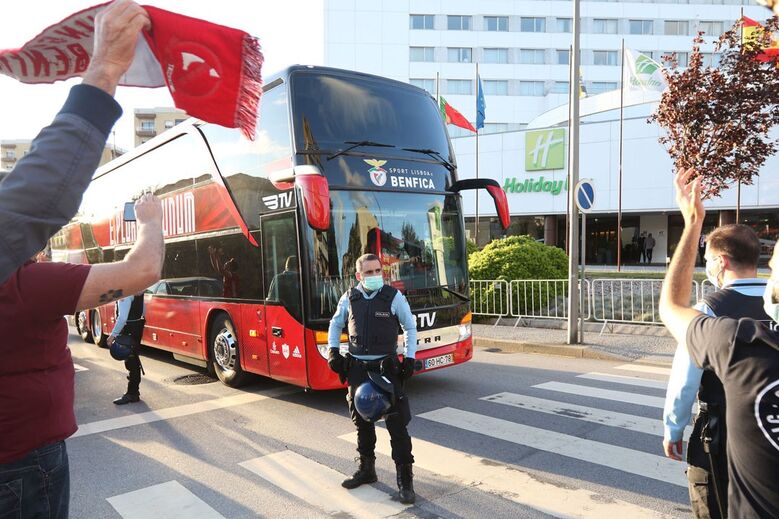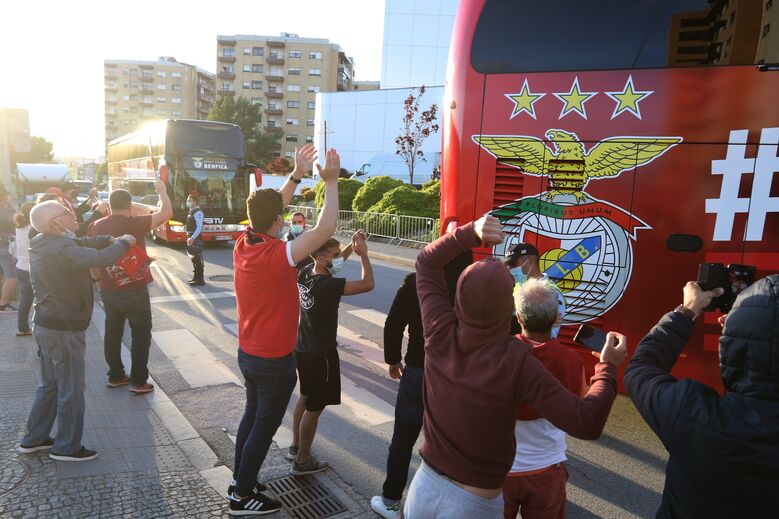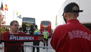 Adeptos aplaudem a equipa do Benfica à chegada a Gaia