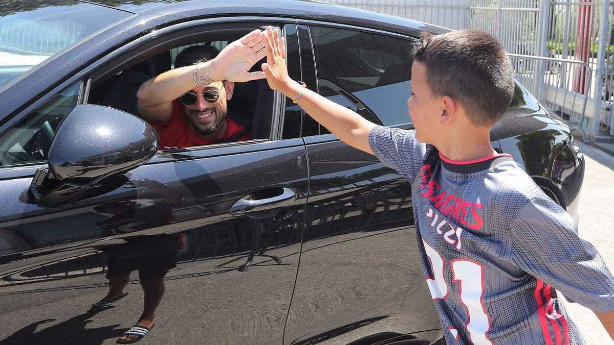 O Benfica fez esta segunda-feira o primeiro treino tendo em vista a temporada 2020/21 com os jogadores a darem na vistas com os carros com que se apresentaram no Seixal. Um grupo de adeptos fez questão de os saudar no momento em que deixaram o centro de treinos [Pedro Ferreira]