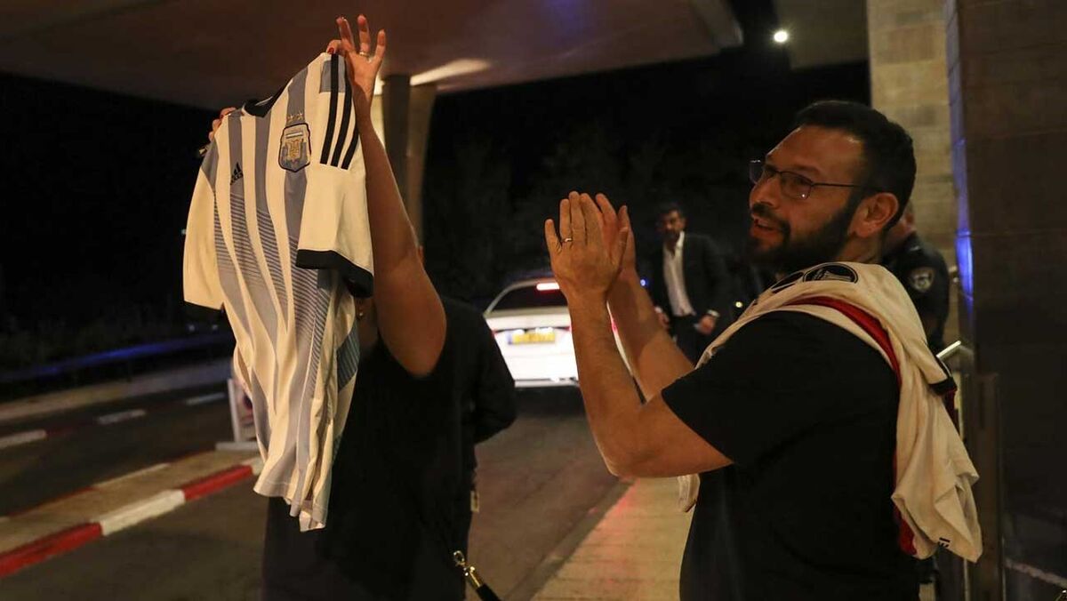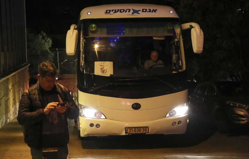 O Benfica chegou ao hotel onde ficará instalado em Haifa já perto da meia noite, isto depois de terem chegado a solo israelita via Telavive. À chegada, os encarnados contaram com a presença de quatro adeptos que vieram de Braga e ainda um casal israelita que recebeu a comitiva das águias com duas camisolas bastante curiosas: uma da Argentina e outra do River Plate. (Fotos: Luís Manuel Neves)
