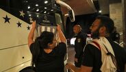 A chegada do Benfica a Haifa: quatro adeptos receberam equipa e tiveram direito a selfie com Rui Costa