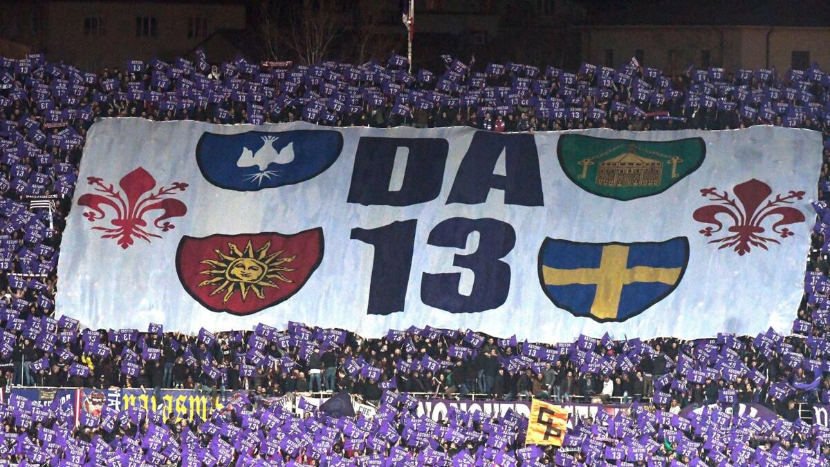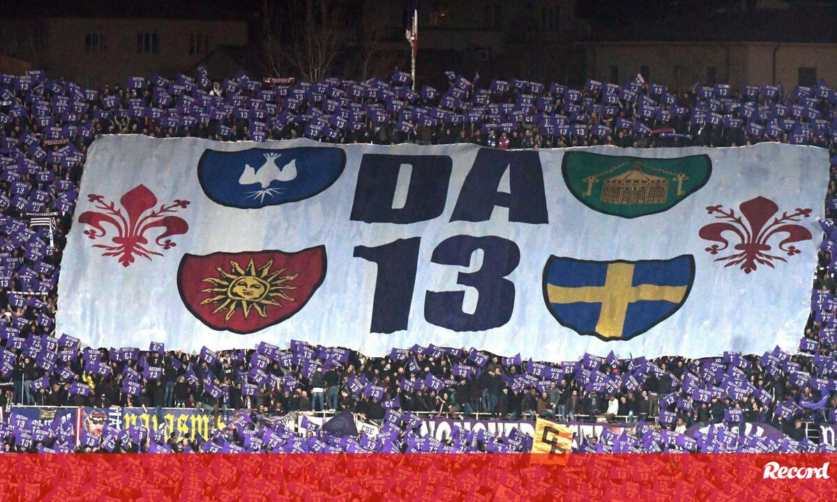 A coreografia dos adeptos da Fiorentina em homenagem a Astori